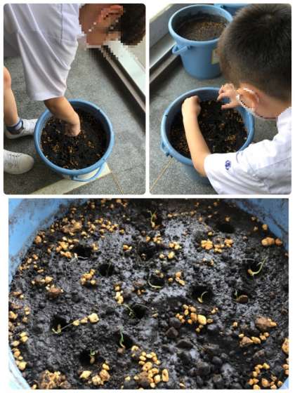 また、先日、水に浸していた種もみが芽を出したので、種まきをしました。みんなひとつひとつ大事に植えていきました。稲もしっかり成長しますように・・・