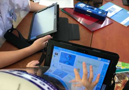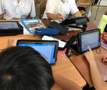 最初の頃は、タブレット操作など慣れない様子でしたが、段々と検索や、文字入力も上手になってきました。発表に向けてこれからスライドや原稿の作成を頑張っていきます。