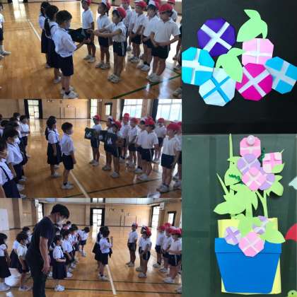 先日、1年生に入学のお祝いで「アサガオのたね」をプレゼントしました。1年センパイとして、「困ったことがあったら何でも聞いてね!」「これからなかよくしてね」と代表のメンバーがあいさつをしました。1年で随分逞しくなったなあという声も。少し照れくさそうに、でも、しっかりとしたまなざしに、担任一同ほっこりしています。2年生、期待していますよ!!