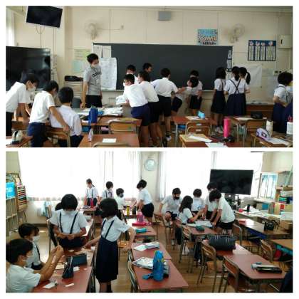 久しぶりに会えた友だちとも話したいことが湧いてきて、自然と距離が近くなってしまいます。手洗い・マスク、朝の体温管理など、1学期から続けていたことをもう一度ふり返って、気を引き締めました。