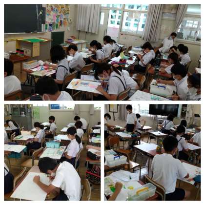 まだ予断は許さないですが、台風一過の今日は3クラスとも図工の授業をしました。