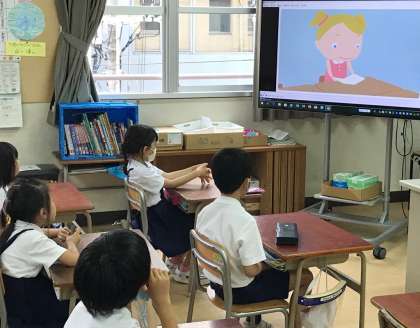 DVDを視聴した後、「What did you hear?」の質問に、たくさんの子どもたちが手を挙げて聞き取った単語やフレーズを出し合せます。