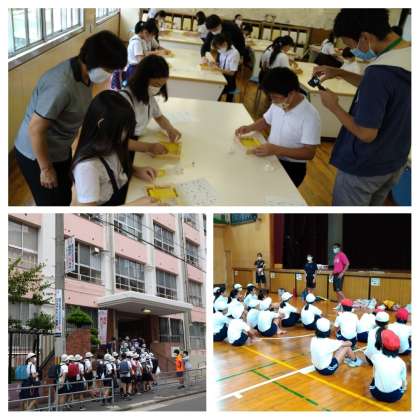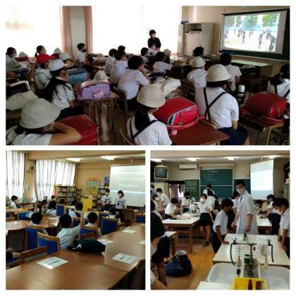 同じ中学校区である本田小学校・明治小学校の6年生と一緒に、同じ教室の下で学びあいました。