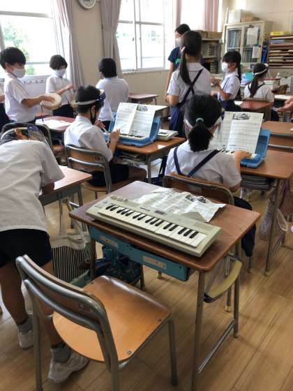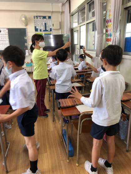 安全に配慮しながら、たくさんの楽器に触れることができました。