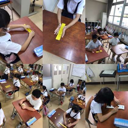 また、ブロックを使って数のまとまりを確認。目で、手で、頭で、一生懸命考え、楽しい時間となりました。