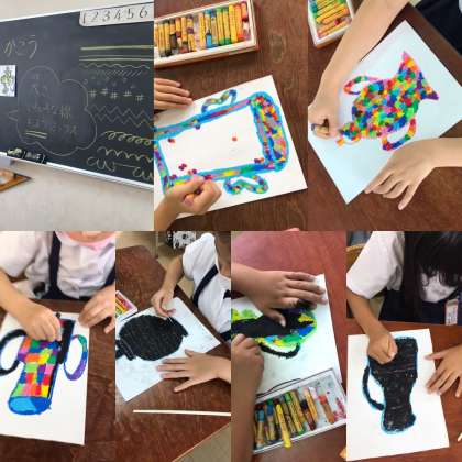 写真は、図画工作科の「小びん・スクラッチ」の様子です。