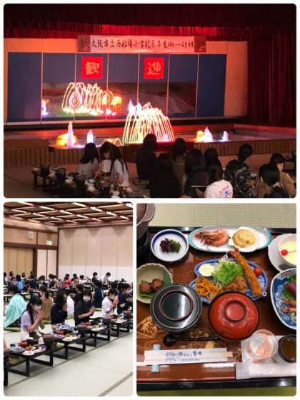 大広間でみんなで楽しく夕食をいただきました。