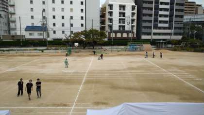も、本部の上方2階に掲げています。普段の運動場よりも広い会場で、思いっきり動けるよう取り組んでまいります。しっかりと体調を整えて、明日はスッキリと晴れることを願っています。