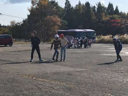 すべって転んでケガ…は避けたいので、宿舎前の広場で遊んでいます。