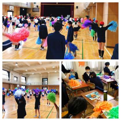 子どもたちはみんなで協力しながら、教室でカラフルなポンポンを作り、今日の実技に取り組みました。