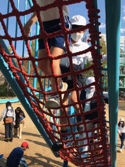気持ちのいいお天気の中、額に汗が滲むほど、思いっきり遊びました。広い広い大阪城公園を端から端まで堪能して帰校。