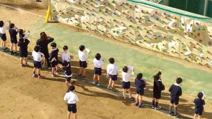 朝からとても天気が良かったので、1時間目は運動場に出て光の実験を行いました。