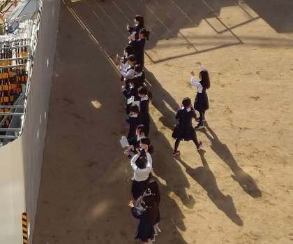 太陽が放つ光を、手鏡で受け、丁度良い角度で反射させると・・・その鏡から出た光が壁に映し出されました! 子どもたちもワーッと歓声を上げ、とても楽しそうに学んでいました。