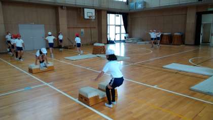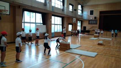体育館での割り当てのときには、いま跳び箱に取り組んでいます。