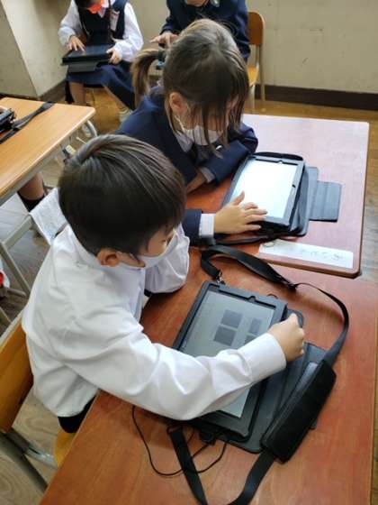 タブレットを つかった 学しゅうも すこしずつ はじめています。