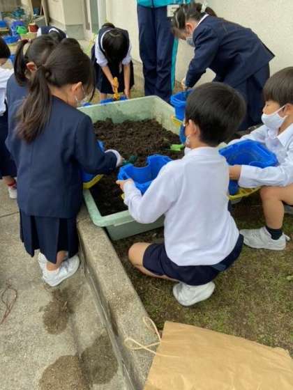 1ねんせい せいかつか チューリップのきゅうこんをうえました