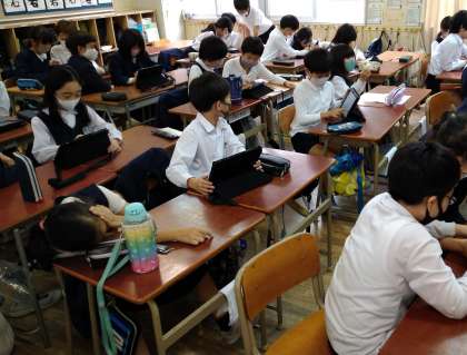 総合的な学習の時間には、パソコンやタブレットを使いながら学習をすることもあります。