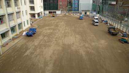先週にはあった「土」の山はきれいに平らになり、最終チェックをしているところです。
