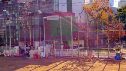 校舎からよく見ると、どうやら元々プールがあった場所には、黄色い「うんてい」や砂場があるようですね。