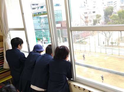 教室から、外で遊んでいる子たちを眺めている人もいました。部屋の中はあったかいですものね。