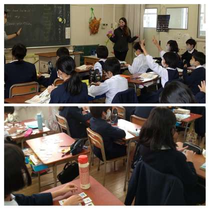 今年度は、ALTにメリンダ先生を招いて、本場のEnglishに触れながら外国語活動をしています。みんなにとっては、先生がいつも手に持っている、お花のぬいぐるみでお馴染みですよね。