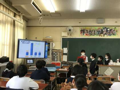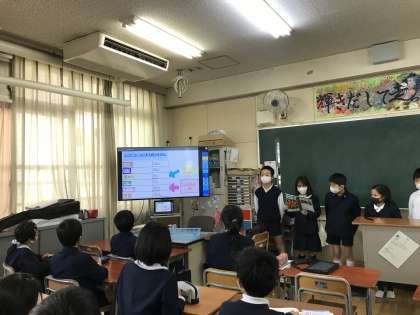 国語発表会の前半を行いました。エクセルや発表ノートなどのICTを用いて各班独自のアンケートをまとめ、上手く発表できていました。以前の国語の学習でもICT機器を用いた発表を行いましたが、その時よりも格段に上手になっていました。