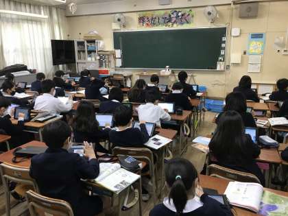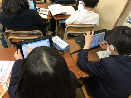 今日から社会科の学習でタブレットをを使った調べ学習が始まりました。子どもたちは他教科でもタブレットをよく使うので、操作はおてのものです。集中して取り組めていました。