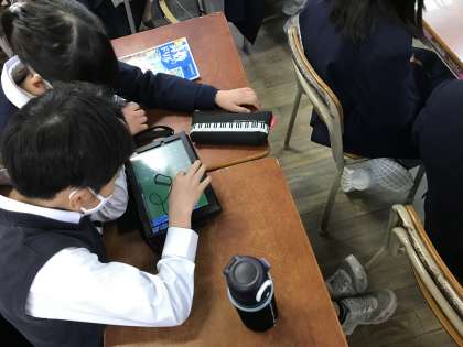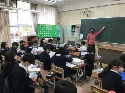 国語の学習で自分たちが調べたことを発表しました。タブレットを使って、相手に伝わりやすいようにするにはどうしたらよいかを考え、スライドを作り、発表できていました。