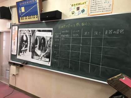 今日は鑑賞教材「山の魔王の宮殿にて」を聴き、曲想の変化について学習しました。子どもたちは、「なんか不気味!」「怖い感じがする!」などと、曲が進むにつれてドキドキ興奮している様子。体を動かしながら、曲の気分や主人公ペールの気持ちを感じ取り、なぜそう感じたのか、「速さ」「強さ」などに注目して話し合うことができました。