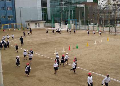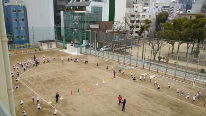 1時間目と3時間目の休み時間には、音楽に合わせてランニングをしています。学年ごとに走る日にちを設定して、この2月は取り組んでいます。