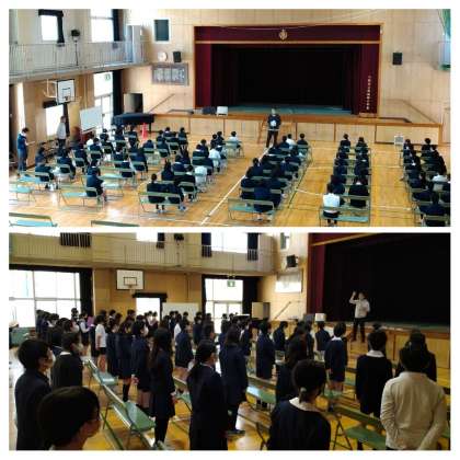 気温も高まって麗らかな日差しの中、卒業式の練習が本格的にスタートしました。