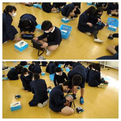 今回は『mBot』という車型のロボットに、タブレットを通してプログラミングをしました。
