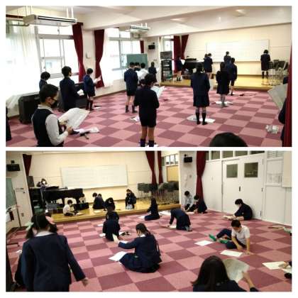 卒業式に向けて、音楽室でもピアノの伴奏に合わせてハーモニーを奏でています♪♪写真は、新校舎にできた第2音楽室の様子です。