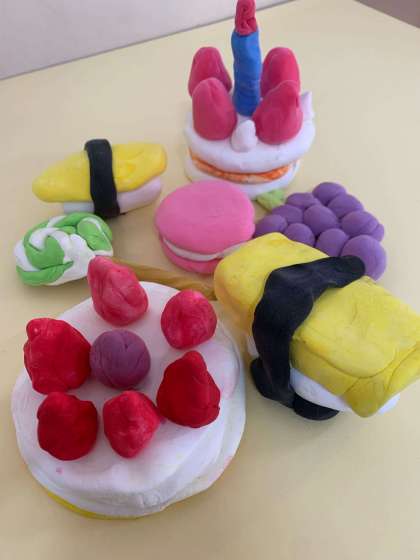 手をよごしながらも、一人ひとりねじったり、こねたりして、とてもおいしそうなごちそうができあがりました。