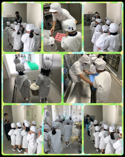 給食当番の児童が、給食室まで給食や食器を取りに行きました。