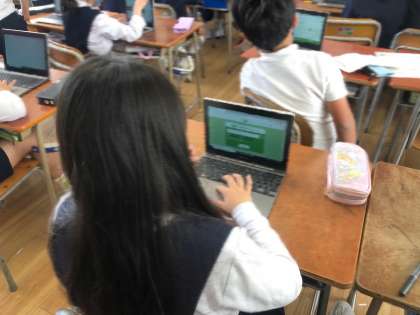自分のパソコンを使えることにワクワクしながら、楽しく操作していました。
