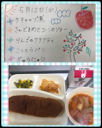 『ケチャップ煮』は、鶏肉を取材にじゃがいも、たまねぎ、にんじん、青みにグリンピースをし、ケチャップなどで味つけしたスープ煮です。