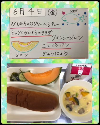 『クインシーメロン』は、給食で年に1回登場します。1人1/8切れずつつきます。