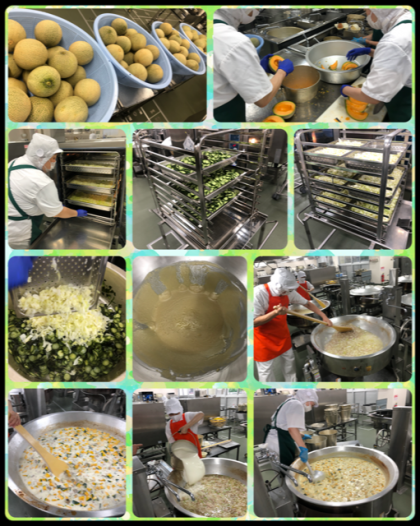 『かぼちゃのクリームシチュー』は、鶏肉、ベーコンを主材に、旬のかぼちゃをしようしたクリームシチューです。