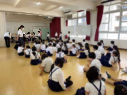 3年生は、多目的室で歯科検診を行いました。