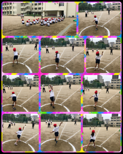「ソフトボール投げ」では、手を大きく振り上げて、遠くへ飛ばそうと頑張っていました。