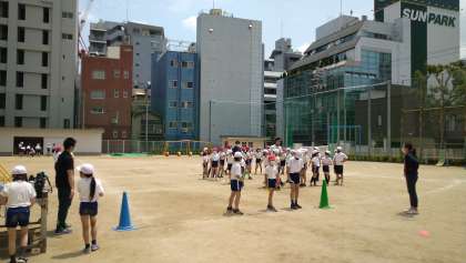 日差しがまぶしいなか、運動場でたっぷり走りました!