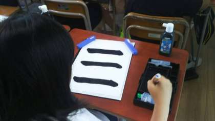 「一なのにむずかしい。」と筆の扱いに苦戦している様子でした。