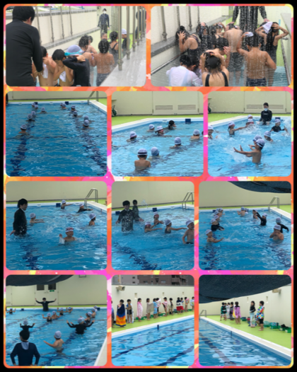 プールサイドに移動し、プールへの入り方の約束の説明を聞き、プールへ・・・最初はみんな足はとどくかな・・・深くないかな・・・と恐る恐る入っていました。