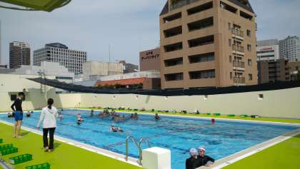 今年はこのような情勢だということもあり、1時間に1クラスずつ順番に入ります。先週に1組・2組が入っています。また、更衣室を別に分けたりシャワーの人数を制限したりして、いろいろな対策を取っています。