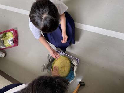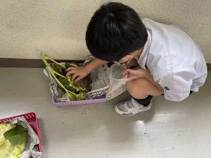 学校の花壇に咲いていた向日葵が枯れ、子どもたちは休み時間に向日葵の種を一つずつ採っていきました。一つの向日葵にたくさん種が入っていたので「50個も採れたよ。」と喜んでいる様子もありました。