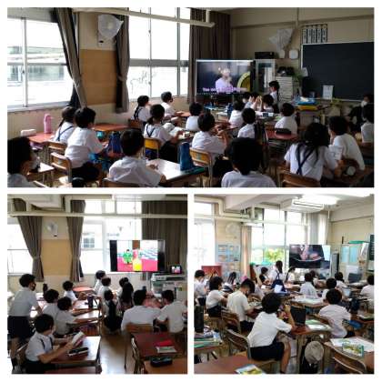 動画を見ながら英語を唱えるだけなく(あまり大きな声は出せないですが)、リズムに合わせて体を動かしたりストーリー仕立ての劇を見たりして、英語に親しんでいます。