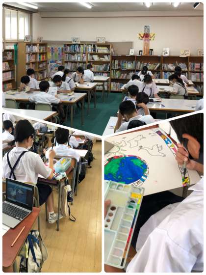 デジタルドリルで学習を深めたり、気持ちを込めてていねいに平和ポスターを描いたり、集中して本を読んだりしています。