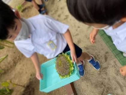 子どもたちは「どのひまわりの種が多いかな〜?」「こっちのひまわりの方が大きいよ!!」と、目を輝かせながらひまわりを選んでいました。