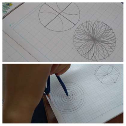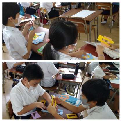 単元の最後には、同じような模様を描くことで浮かび上がる幾何学な、しかし美しい図形ができたようです。友だち同士で「こんなのもできた!」と紹介したり、さらに追究したりする姿勢には目を見張るものがありますね!